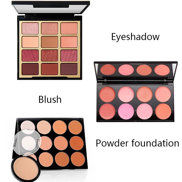 Application: powder foundation, blush, eyeshadow